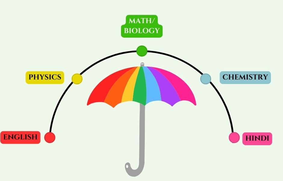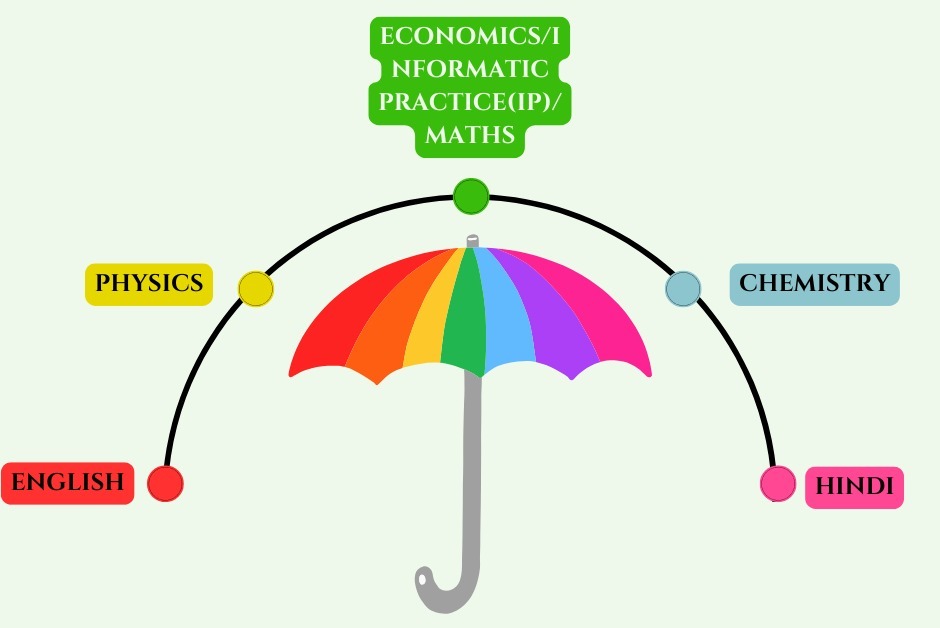 A. English B. Hindi C. Physics D. Chemistry E. Economics/Informatic Practice(IP)/Maths