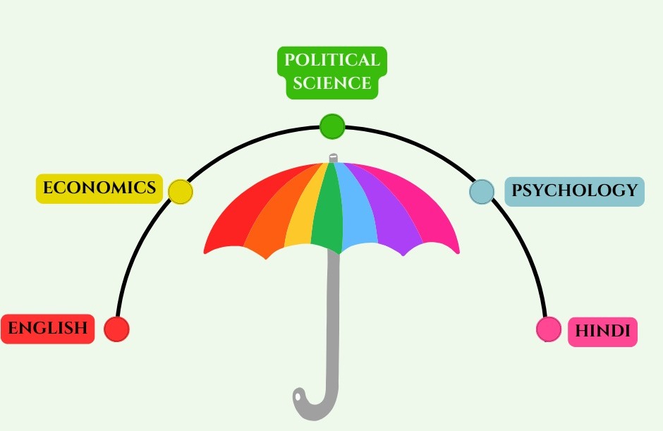 A. ENGLISH B. HINDI C. POLITICAL SCIENCE D. ECONOMICS E. PSYCHOLOGY